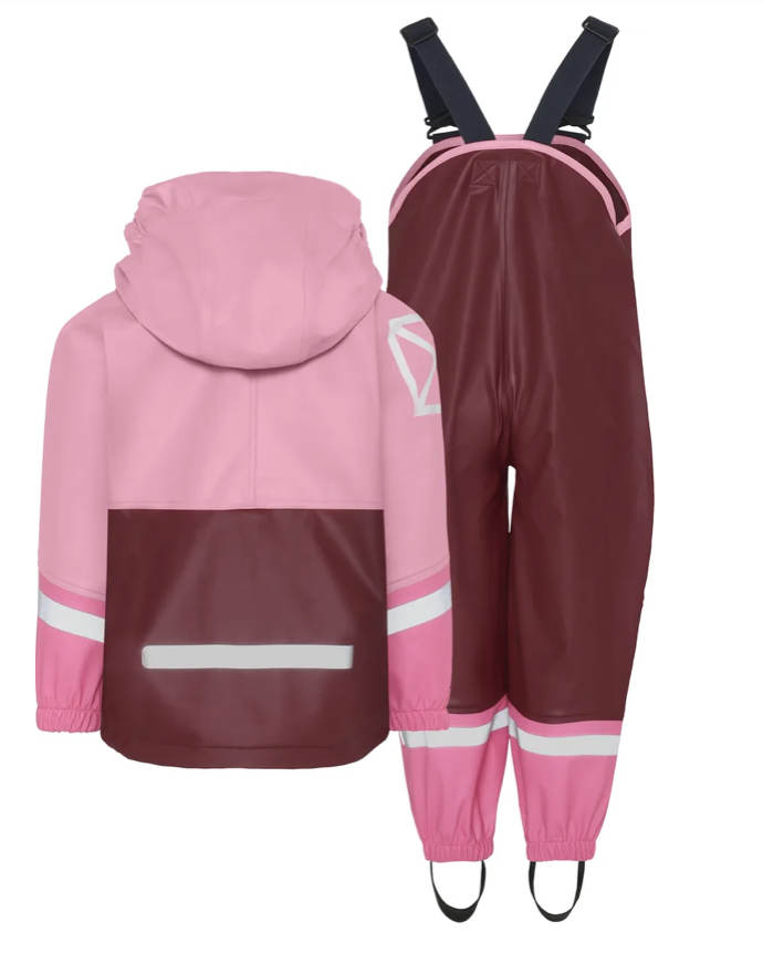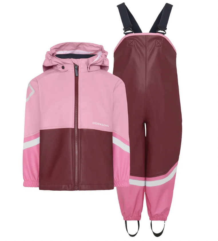 Kids' Waterman Set 12 från Didriksons är ett vind- och vattentätt regnställ för barn. Både regnjackan och regnbyxorna är tillverkade av Galon® med svetsade sömmar som håller barnet torrt i kraftiga skyfall och höga plask i vattenpölar.