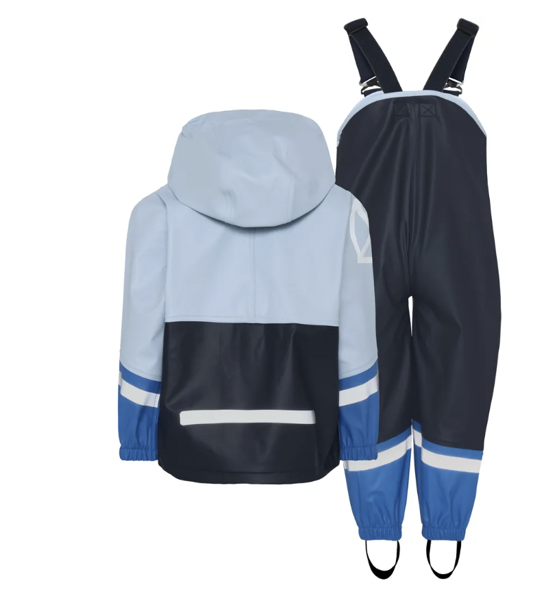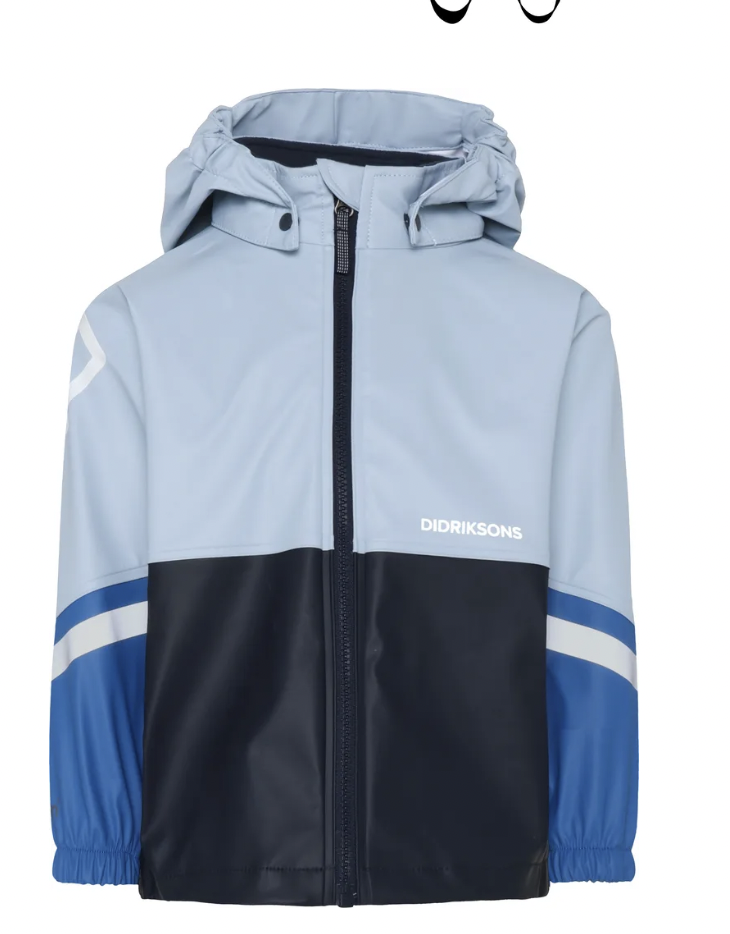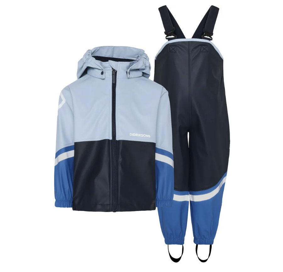Kids' Waterman Set 12 från Didriksons är ett vind- och vattentätt regnställ för barn. Både regnjackan och regnbyxorna är tillverkade av Galon® med svetsade sömmar som håller barnet torrt i kraftiga skyfall och höga plask i vattenpölar.