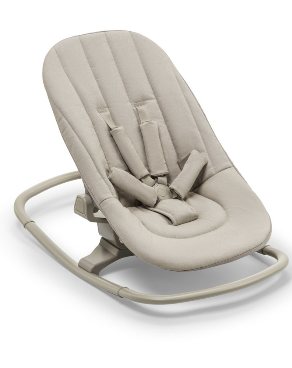 Gungramen kan användas i två olika lägen – antingen i ett mjukt gungande viloläge eller som en stabil och stillastående babysitter. Genom att enkelt fälla ut de små stöden växlar du mellan de olika funktionerna.